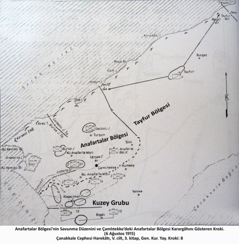 Anafartalar Bölgesi Komutanlığı, 5. Ordu yapılanması içinde Haziran ayından itibaren Kuzey Grubu’na bağlı olarak görülmektedir. Komutanı Alman Yarbay Wilmer, kurmay başkanı Binbaşı Haydar Mehmed’dir.